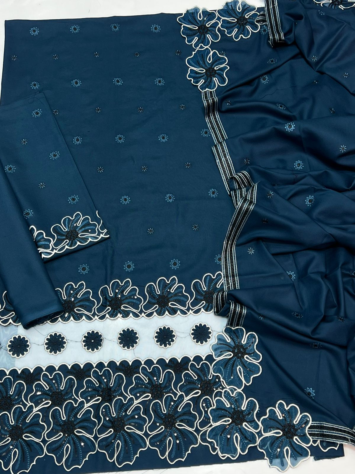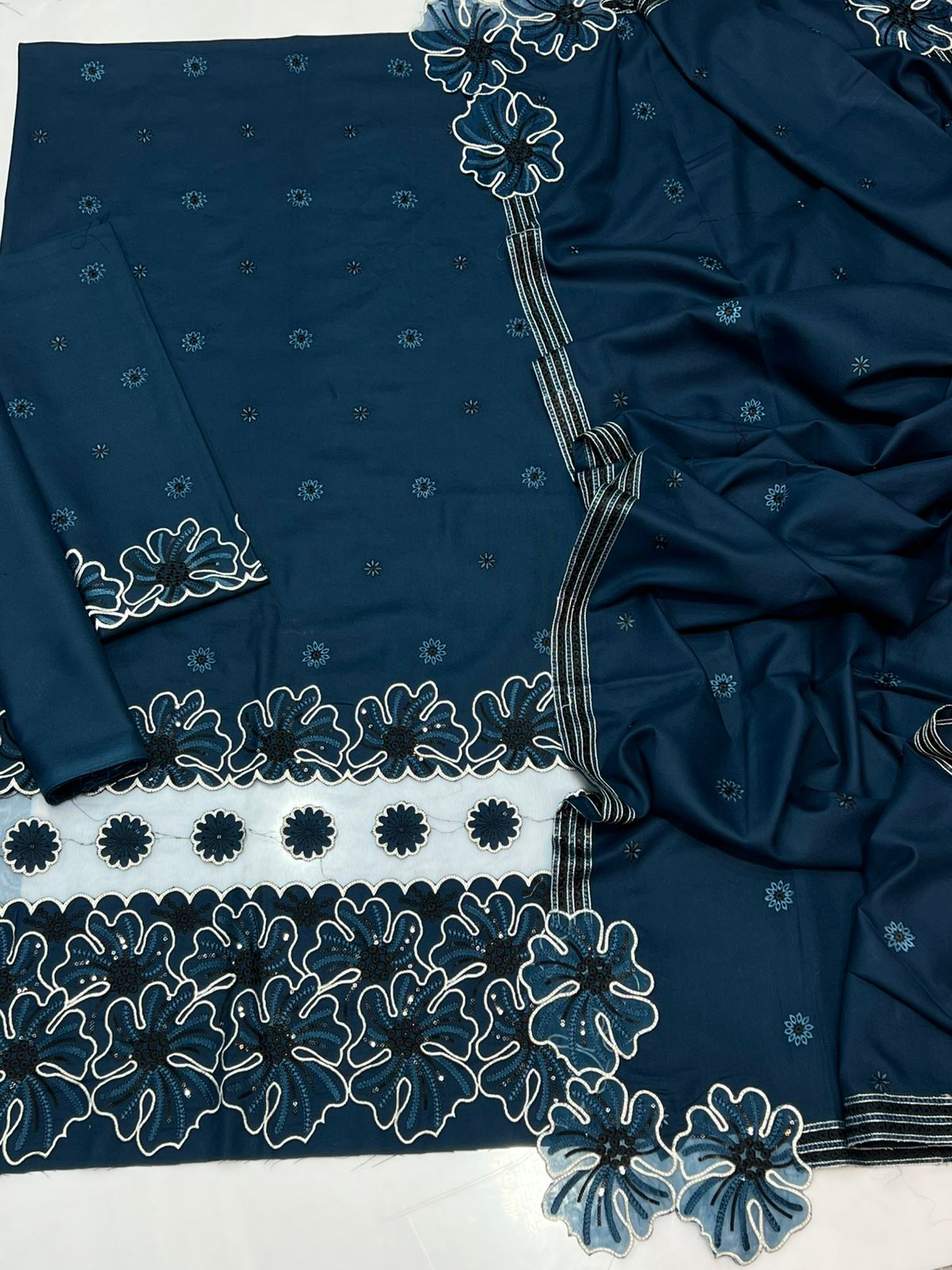 ❤️ Front fully adorned with heavy embroidery, enhanced with laser-cut & cutwork daman