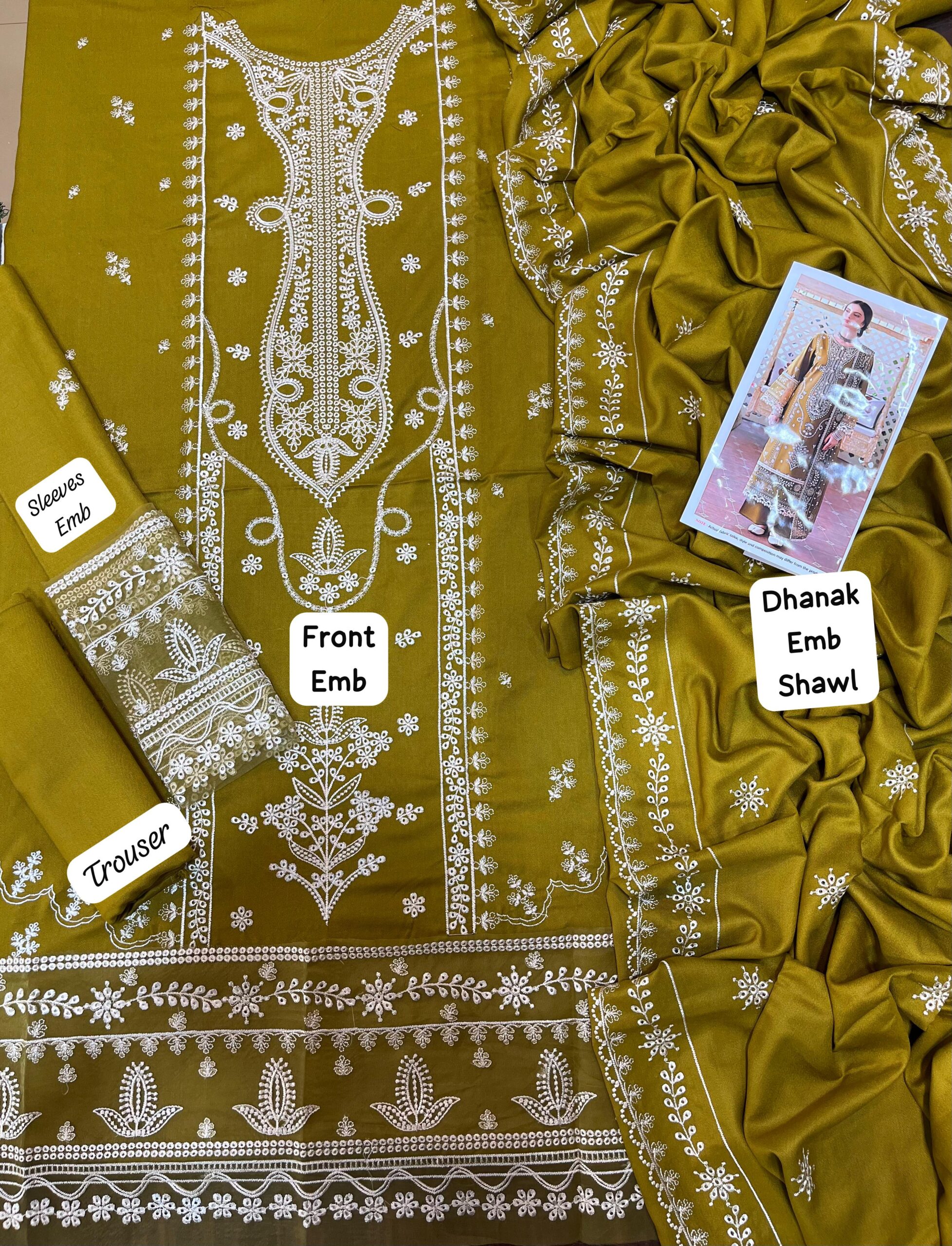 Paired with an embroidered Dhanak shawl